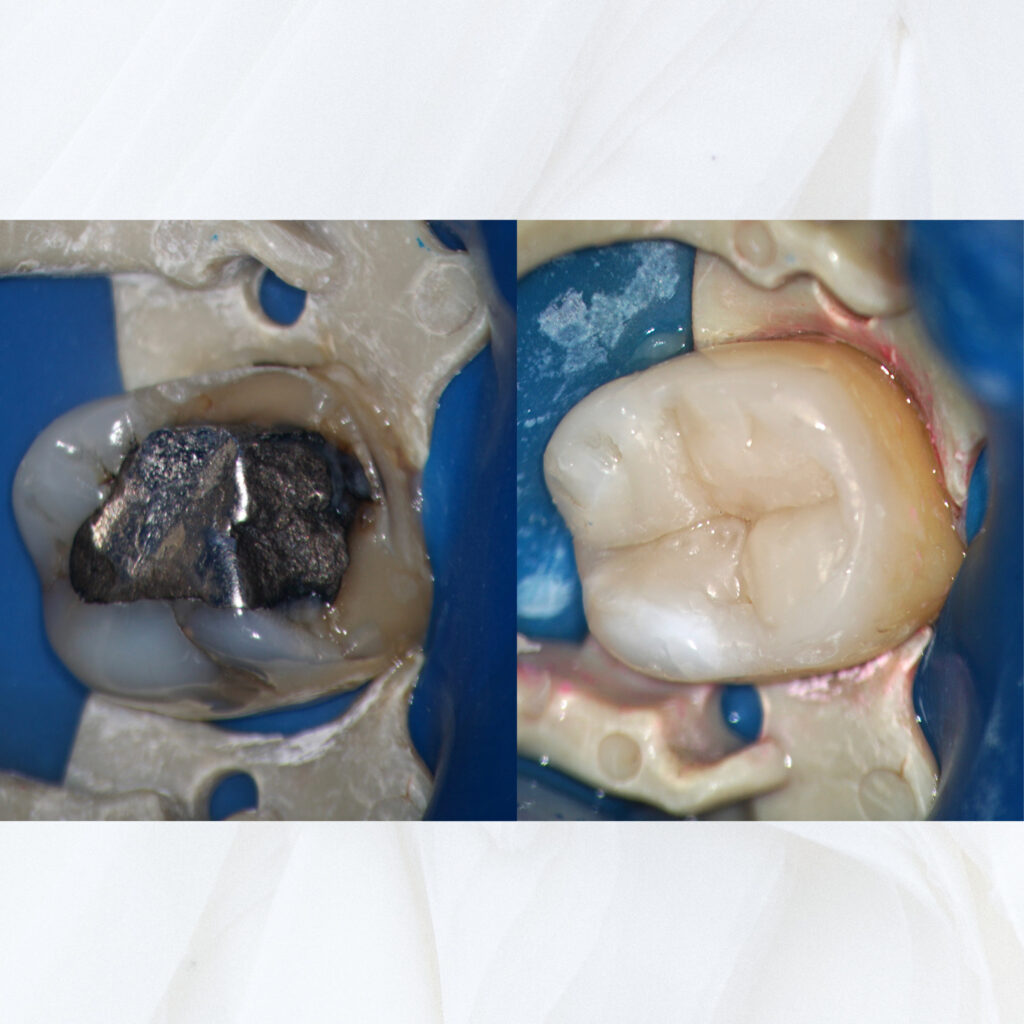 Výmena opotrebovanej amalgámovej výplne za bielu a estetickú výplň